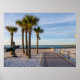Poster med en vy som tittar ner den tegelstenade gångvägen vid ingången till Pensacola Beach, Florida, Förenade Stater på en tyst tidigt morgon med lite handflatan träd och en surfarstaty. Tittar du fler utskrifter eller produkter? Besök gärna min butik: http://www.zazzle.com/timelessmomentsphtgy Det här fotot togs av Jennifer White med Timless Moments Photography. Alla bilder är upphovsrättsskyddade © Timless Moments Photography.