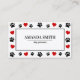 Paw & Heart Prints Dog Groomer Business Card features a white front with black paw and red heart print design and fully customizable text.