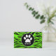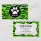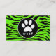 Paw Print på Bright Neon Grönt Zebra ränder Visitkort