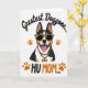 This card features a front-facing, chest-up portrait of a stylized dog in black, white, and warm tan, wearing patterned sunglasses that tilt with a friendly, flirty confidence ❤️. Its upright ears and wide grin show a pink tongue, giving the character an easygoing look that feels like a wink to someone close. A gold-toned chain hangs around its neck, finished with a bone-shaped pendant that echoes the same animal-style pattern as the glasses. The background stays bright white, keeping the focus on the dog and its crisp outlines. Rustic orange paw prints are scattered around the figure, adding a cozy, companionable touch like little footprints leading in for a hug 🌼. The main message sits above and beside the portrait in mixed lettering styles, with black words paired with orange accents for emphasis. Smaller supporting text appears near the lower area in black, spaced to frame the necklace and pendant without crowding the artwork. The sunglasses show a tan-and-dark spotted pattern, and the paw prints are a muted orange placed near the corners and sides.