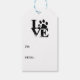 Ett "L" och "a tass" staplas på "V" och "E" för att stava "KÄRLEK". Den här enkla designen representerar din kärlek för dina fyra gamla vänner. Om ditt sällskapsdjur är en hund, katt, kanin, sköldpadda, hamster eller någon annan speciell vän kan den här designen användas för att visa kärlek för det. En del av Tassar i fred (Pet Loss Loss Loss Sympathy Cards - Wrapping & Tissue Paper Collection. a)