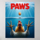 Get ready to laugh out loud with this PAWS parody design! A hysterical twist on the classic Jaws movie poster, this version features a wide-eyed chicken underwater reaching toward a floating egg — complete with the iconic red “PAWS” header.