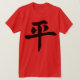 Manar's red Bella Canvas grundläggande t-shirt med en bild av den kinesiska karaktären för fred. Visa hela uppsättningen av Enlightenment-apparaten i SPECIELLA TUUCHES | Avsnittet Party favors.