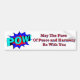 I tecknad delar stötfångaren bok stil budskapet "POW! Må kraften i fred och harmoni vara med er för att motverka den nuvarande politiska kraften i kaos och splittring.
