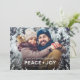 Prisvärda anpassningsbar tryckte ut julfotokort med enkla mallar för anpassning. Den här snyggten har en enkel fotoöverläggningsdesign med ett gräns av botaniskt grenar, löv och vingar. Hälsning säger att ditt hjärta kan fyllas med fred + glädje i en modern typografi. Anpassa den med din bild, namn, årstext eller annan anpassningsbar. Omvänd sida har plats för ytterligare foton eller text. Använda designen verktyg för att redigera texten typsnitt och färg, lägga till fler foton och skapa en unik julfotokortsdesign.