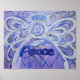 "Fred", inspirationsmålning av Angel Ord - ord för "fred", målas i skuggor lavender med lila, blått och guld. En duva flyter ovanför ord-freden och det finns många-hjärtan på ängeln. Akrylmålningen har en texturkontrast och gnistra från ett ljus lagrar i glitter. Du kan anpassa den här inspirerande skyddsängelkonsten som poster utskrift med din egen text och bilder med alternativet "Anpassa den". Vinsterna från denna försäljning stöder den icke-vinstdrivande verksamheten 501(c)3 DonnaBellas Änglar.