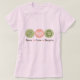 Visa kärlek för miljön med vår söta linje med återvunna t-shirts med en fredssymbol, en symbol för hjärta och återvinning i rosa och grönt.