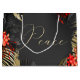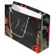 Det tropiska öbladet i guld och svart på svart bakgrund med bedövande rödblommor gör detta till en chic av ett modernt val av presentsäck för alla helgdag. Fred skriven i guld kalligrafi.