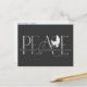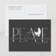 De här 5,6 x 4,25-tumsvykorten Julhälsningar hälsning, "Fred" i stora brev i skuggor av grått på en svart bakgrund med budskapet "Önskar fred, kärlek och glädje i julhelgen". Lägg bara till ditt/dina namn och år. På baksidan finns platshållare för avsändarens namn & adress.