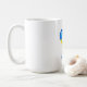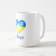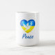 Visa stöd för Ukrainas folk med detta kaffe mugg med en fredsduva silhuett på hjärtformade flagga Ukraina