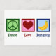 Peace Kärlek Bananas. En söt banangåva från älskare med ett fredstecken och hjärta bredvid gulten frukt.