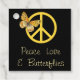 Stor fredssymbol för gult som är känd värld runt, med gult-fjäril-övertäckning på svart bakgrund. anpassadet "Peace kärlek & Butterflies"