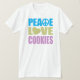 Peace Kärlek Cookies... Vad mer behöver du i livet? Perfektens gåva till kakaomissbrukare. Det spelar ingen roll om du är en tränad professionell bakare som piskar upp kakor i ditt eget bageri, du är bara en julkaka som skapar de prydnadsdekorerade kakorna, du är en bakande missbrukare som alltid kommer med nya och unika kakor, eller du kärlek äter kakor oavsett om det är choklad chip, socker, havremat eller jordnötssmör.Du är beroende för kakor! Lustigt presentkort för någon cookie älskare. Underbar för någon cookie-diva. Design har ett hjärta och ett fredstecken. Se vår butik för mer roligt och unikt Peace Kärlek ...Skjortor och gåvor.
