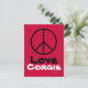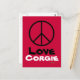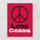 Peace Kärlek Corgie Postcard Vykort