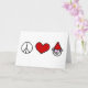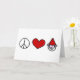 Har en roligt tecknad teckning i ett fredstecken, ett rött hjärta och en gnom med en röd hatt.