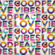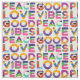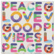 En mönster av unik färgstark dekorativ text Peace Kärlek Good Vibes. Snygg biet av tyg åt vem som helst. Om det behövs användor du alternativet "Anpassa den" om du vill placera bilden på en produkt eller ändra färg på bakgrunden. Njut, köp en, ha roligt och vara lycklig. #peace #kärlek #GoodVibes #färg #text #typografi ##craft #craft