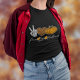 Den här söta svarta t-shirt-skjortan har ett fredstecken med skelett på hand, en orange med leopard mönster och ett svart hjärta och en orange pumpor. Trendigets manustext lyder: Fred, Kärlek, Halloween, med orange mellan ord. Välj bland många olika t-shirt-färg och stilar.