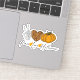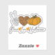 Den här söta konturklistermärket har ett fredstecken med skelett på hand, en orange med leopard mönster och ett svart hjärta och en orange pumpa. Trendigets manustext lyder: Fred, Kärlek, Halloween, med orange mellan ord.