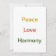 Röd, grönt och guld. Det talesättet är fred, Kärlek, harmoni. Detta är ett trevligt talesätt för en säsongs hälsning eller någon gång på året. Fetstig, ljus och minimalistisk. Baksidan har Säsonhälsningar från namn och datum. Det kan vara personlig.