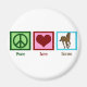 Jag vackra hästar i kärlek. Ett fredstecken av söt grönt, ett rött hjärta och en brun häst på en blå kvadrat gör en söt gåva av riddarmagnet.
