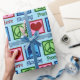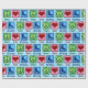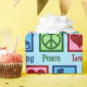Stängning av lökskålar papper för en figur-skater med fredstecken, hjärta och isskal. Söt PEACE KÄRLEK ICE SKATTAR i blått.