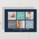 Välj en egen färger på den här moderna färg-blockbildmallen. Julhälsningar kort utan nämnvärd med geometriska färg-kuber. Sex ram-fotokortsmallar kan användas för sex olika foton eller med färg-blocken mellan. Handskript text med en ord-fred, Kärlek, Joy-design i var och en av tre färg-kuber och tre foton och roligt-triangel mönster på baksidan. Det här fotohälsningskortet kan ändras och användas för valfri tillfälle, markera en annan färg än vit om du vill och ändra eller ta bort färg-block efter behov.