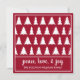 Peace Kärlek Joy Modern Burgundy White Träd Mönste Julkort