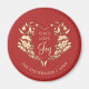 Julmagnet i god personlig med en röd rik med en guldfärgad hjärtkrans och ord Peace, Kärlek, Joy. Den här helgdag-magneten är anpassad till din familj namn och år och gör en perfekt julkeepy, lagerhållare eller partifavör. Ett sätt att dekorera kylskåp, magnetskivor eller kontorsutrymmen på snyggten samtidigt som man samordnar med matchande kort, etiketter, presentkort och helgdag.