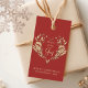 Elegantens julklapp märkre med en rik röd bakgrund med en guldfärgad blommigt hjärtkrans och ord Peace, Kärlek, Joy. Personlig med din familj namn och Julhälsningar är den här festliga märkrn perfekt för att lägga till en snyggt som avslutar beröring till Julklapp, party favors och helgdag presentemballering. En samordnad design som matchar julkort, kuvert och klistermärken för en komplett uppsättning helgdag.
