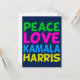 Cute Peace Kärlek Kamala Harris-kort för en framstegsvänlig demokrat som kärlek roligt, färgstarka politiska konstruktioner. Omröstning om Kamala som president i valet 2024. En liberaldesign i roligt på ljusa färger.
