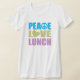 Peace Kärlek Lunch... Vad mer behöver du i livet? Perfektens gåva till vilken lunch som helst. Det spelar ingen roll om du är professionell eller servitör/servitris som hela tiden arbetar på lunch-skiftet, du är student (eller lärare) som inte kan vänta på lunchrast varje skoldag, du kärlek-smörgåsar och räkna ner minuterna till lunch, du är en lunch dam (eller gentleman) i skolcafeterian och inte kan vänta på att dina favoritlunch varje dag, eller så är du En mat och du bara åt kärlek och åt lunch...Du är beroende till lunch! Lustigt julklapp till vilken lunch som helst älskare. Underbar till vilken lunduva som helst. Design har ett hjärta och ett fredstecken. Se vår butik för mer roligt och unikt Peace Kärlek ...Skjortor och gåvor.