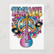 Utformning av en gitarr, fredssymbol och vinylrekord med ord, fred, Kärlek och musik.