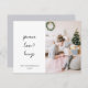 Enkelt, snyggt, minimalistiskt, platt helgdag-kort med modernt, handskrivet manustypografi av avslappnaden, citat "Peace Kärlek & Hugs" i svart med en ren, vit bakgrund med grått-funktionen färg på motsatt sida. Namn och år kan lätt anpassas för personlig kontakt. En elegant, minimalistisk och contemporary julklapp som ska stå ut från folkmassan i julhelgen! Bilden som visas är endast avsedd som illustration för att ersättas med ett eget foto. Platshållarbilden är av mor och son sitta i ett minimalistiskt vardagsrum, som på ett tilltalande sätt rör vid näsan. Hon har en grått sticka-svettare och rosa tutu stil-kjol och bär en grått sticka-bobbelhatt och jeans. Det finns en julgran och en fetiös helgdag i bakgrunden. #christmas #foto #semesterkort