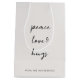Enkel, snyggt, minimalistisk presentsäck med modern informell avslappnad handskriven manustypografi citerar "Peace Kärlek & Hugs" i svart med grått baksida. Namn kan lätt anpassas för personlig kontakt. En elegant, minimalistisk och contemporary julklapp som ska stå ut från folkmassan i julhelgen! #christmas #minimum #presentsäck