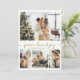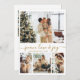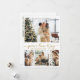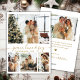 Modern fred, Kärlek & Joy Script 4 Photo Collage jul Card i Guld och White. Detta minimalistiska julkort har en 4-fotorasterkollage på framsidan och ett extra-foto på baksidan. Hälsning, "Peace, Kärlek & Joy", är elegant handskrivet i kalligrafin i guld på en ren vit bakgrund och erbjuder en chic och en modern beröring till ditt helgdag-budskap. På baksidan finns en hälsning-anpassade-mall med en hjärtpunktsmotiv och plats för ytterligare ett foto. Perfekt för att dela festlig glädje med familj och vänner, detta personlig är ett idealiskt sätt att fira julhelgen i stil.