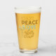 Perfekten glas för öl, citron eller sött te, med texten "Peace Kärlek & Land Music" med daisy bouquet