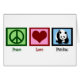 Den ömma pandan är en blå kvadrat bredvid ett fredstecken av grönt och ett rött hjärta. Jag kärlek det här söta jullpandaket. Det här är vackra julkort för djuraktivism.