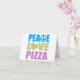 Peace Kärlek Pizza... Vad mer behöver du i livet? Perfektens gåva till alla pizzamissbrukare. Det spelar ingen roll om du är en pizzabagare, du är en konkurrerande pizzagelagare, du jobbar på en pizzabaled, du kärlek skapar nya smaker av pizza, du drömmer om ost, korv, pepperoni, svamp, grönt paprika osv. eller du bara beställer kärlek pizza så mycket varje kväll (och två pizzor på Fredag)...Du är beroende för pizza! Lustigt presentkort för pizza älskare. Underbar för alla pizzadiva. Utformningen har ett fredstecken och ett hjärta. Se vår butik för mer roligt och unikt Peace Kärlek ...Skjortor och gåvor.