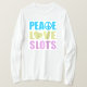 Peace Kärlek Slots... Vad mer behöver du i livet? Perfekt för spelberoende. Det spelar ingen roll om du åker till Vegas varje år för att slå upp kasinona, åker till den lokala flodbåten, går med den äldre medborgaren buss resor till lokala kasinon eller spelar noveltyn vid pub..Du är beroende att släppa in maskiner! Lustigt presentkort för alla kortspelare. Underbar gåva till vilken kortplats som helst. Design har ett hjärta och ett fredstecken. Se vår butik för mer roligt och unikt Peace Kärlek ...Skjortor och gåvor.