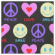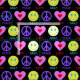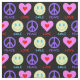 Visa fred, kärlek och lycka med detta färgstarka mönster på en anpassningsbar svart bakgrund. Denna struktur har en lila fredssymbol, ett rosa hjärta och ett lycklig ansikte. Bär andra med det här vismska mönster!