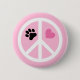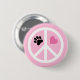En knapp för att fästa tillbaka djur älskare med ett vitt fredstecken, ett rosa hjärta och en tassutskrift.