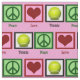 Cute rosa tennis player-väv täckt med fredstecken, hjärtan och tennis bollar. Peace Kärlek Tennis mönster.