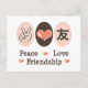 En fredssymbol, ett hjärta och en kinesisk karaktär för vänskap kone på vänskap t-shirts, kläder, kläder och mer varor, tillbehör, smycken och gåvor som säger Peace Kärlek Vänskap i rosa och brunt. Klicka på följande länk om du vill se all söt och originell Chrissy H.