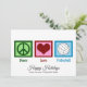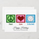 Ett fredstecken, ett hjärta och en söt volleyball på ett sött helgdag kort. Jag kärlek volleyball, strand, inomhus, namn! Söt volleyball-julkort för glad helg med dina medspelare eller tränare.