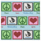 Allt jag behöver är fred, kärlek och vindsurfing. En söt vindsurfergåva med fredstecken, hjärta och en person som vindsurfing på blå hav.