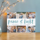 Share six favorite photos with our bright and festive Hanukkah holiday card. "Peace and Light" appears in the center in hand lettered brush typography, with your holiday greeting, names, and the year beneath.