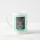 A hand-drawn peace lily (Spathiphyllum) on a bone china mug. It would be a beautiful gift to receive. The white petals of the lily are frequently used in Christian art to symbolize purity, serenity, and the shalom (peace) of God. The combination of the peace lily and the Beatitudes serves as a daily reminder of the call to active reconciliation and the promise of being recognized as God's children.