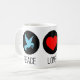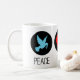 Spread love with this unique peace love unicorns design. Featuring a blue dove, red heart, and green unicorn silhouette, this whimsical graphic brings magic and harmony to your everyday style.
