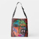 Min funky abstrakt målar upp en kvinna med ett fredstecken på sin kind... gör att korsningspåsen blir ett färgstarkt konstverk att bära med sig!