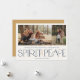 Dessa enkla fotohälsningskort i helgdag har hälsning, "som önskar dig ett God jul och ett Gott nytt år", tillsammans med hälsning, "Fredsprit", i stora sjöar och guld brev på en elfenbensbakgrund med platshållare för att lägga till två av dina favoritfoton, familjens namn och året om.